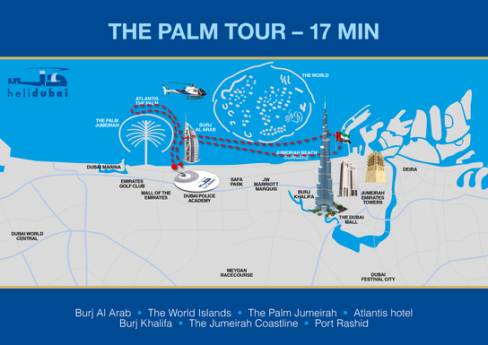 The Palm Jumeirah • Burj Al Arab • The World Islands • Jumeirah Coastline • Atlantis The Palm • Port Rashid • Burj Khalifa