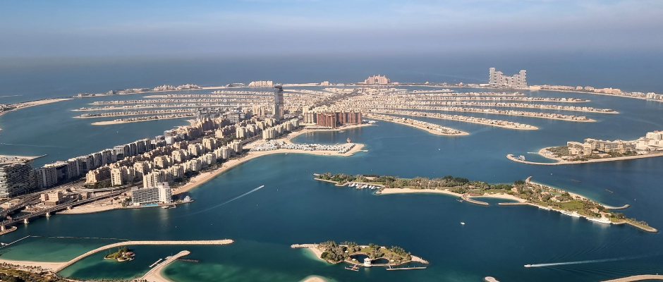 Emirates Hills • Jumeirah Lakes • Bluewaters Island • Ain Dubai • Burj Al Arab • The Palm Jumeirah • Atlantis The Palm • The World Islands •